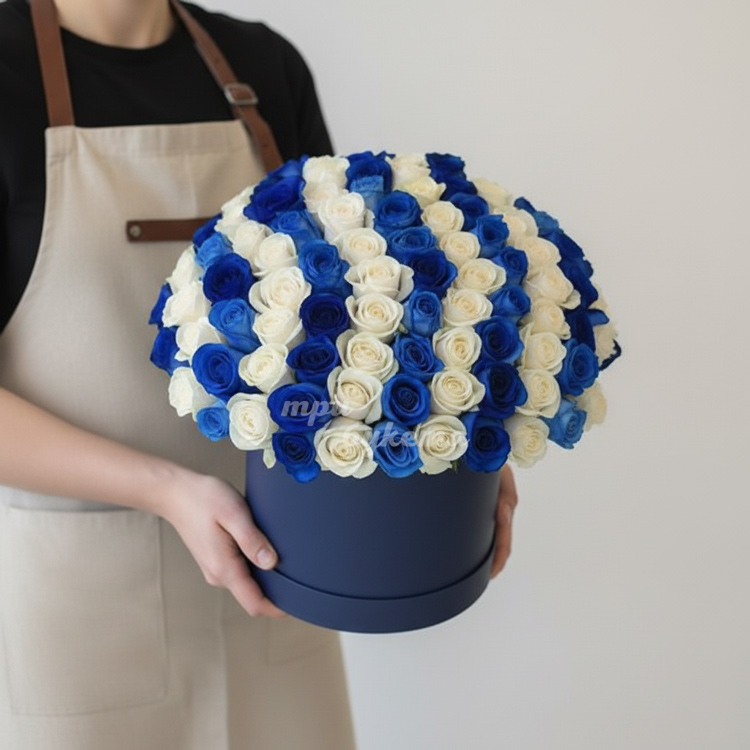 101 синяя и белая роза в коробке
