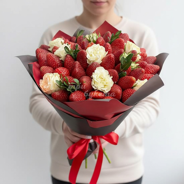 Букет из 50 ягод клубники и роз