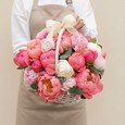 Букет из гвоздик, эустом и гортензии