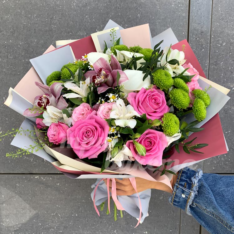 - Внимание! Состав в букете может отличаться в зависимости от сезона. Уточняйте по тел.