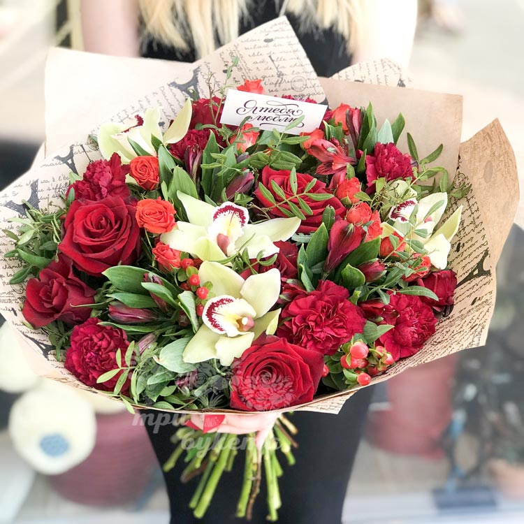 Букет из красных роз и орхидей