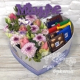 Корзина белых хризантем, эустом и роз