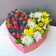 Корзина белых хризантем, орхидей и эустом