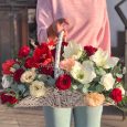 Корзина белых ромашек, хризантем и роз