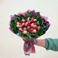 Корзина из розовых роз и 55 клубник