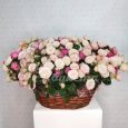 Корзина красных роз с эвкалиптом