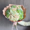 Кремовые и персиковые розы в коробке