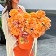 Нежно-розовые розы и эустомы в коробке
