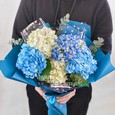 Розовый букет из хризантем и гортензии
