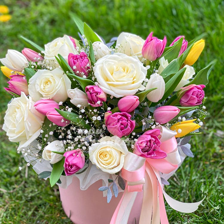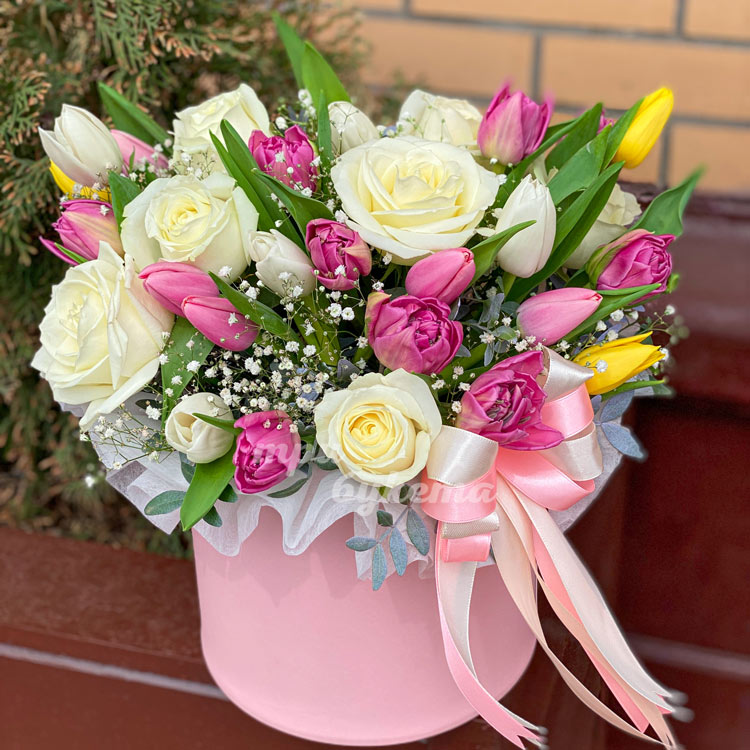 Розы и тюльпаны в коробке