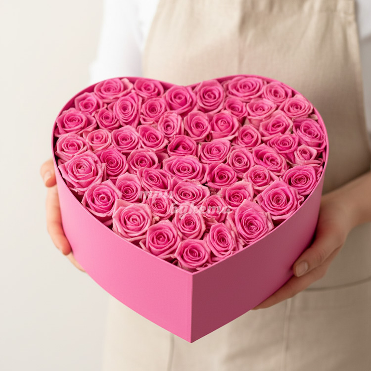 Сердце из 51 розовой розы